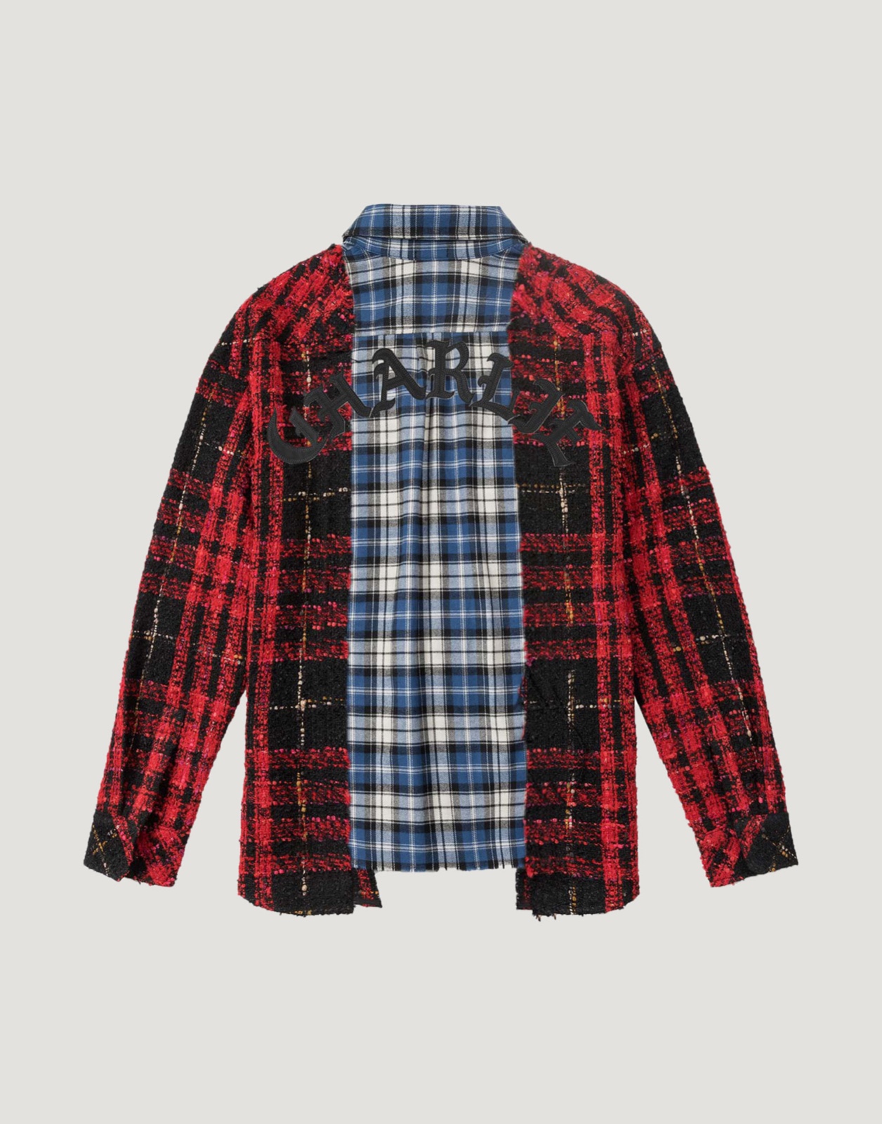logo embroidery panelled tweed overshirt